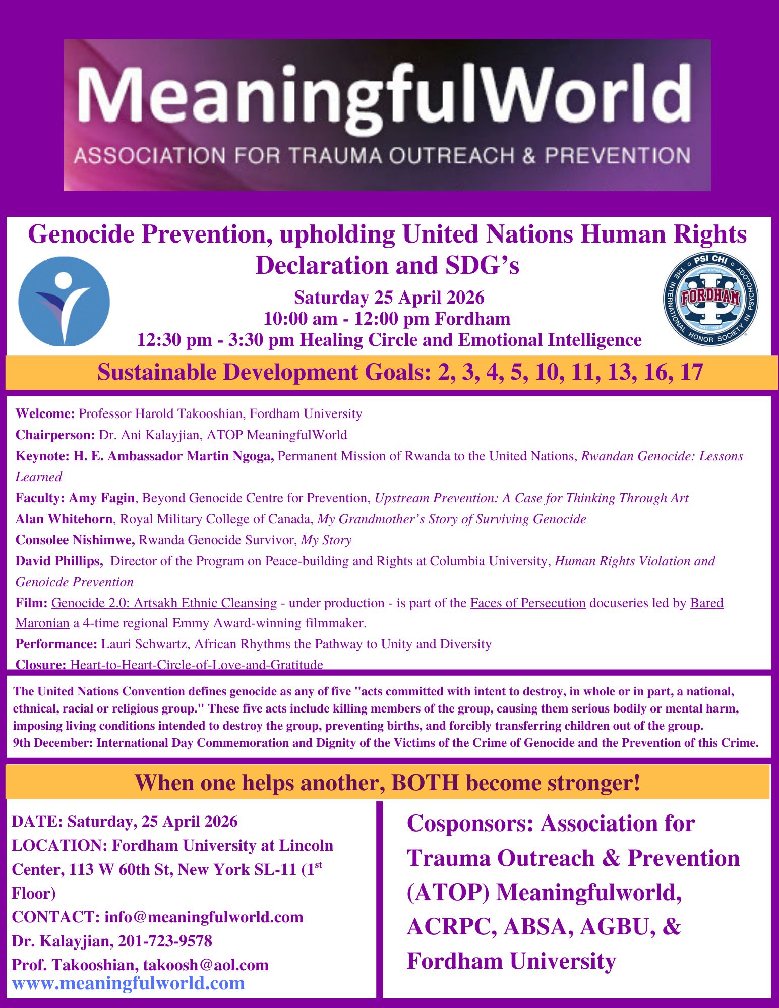 2026 25 April, Genocide Prevention, upholding United Nations Human Rights Declaration and SDG’s